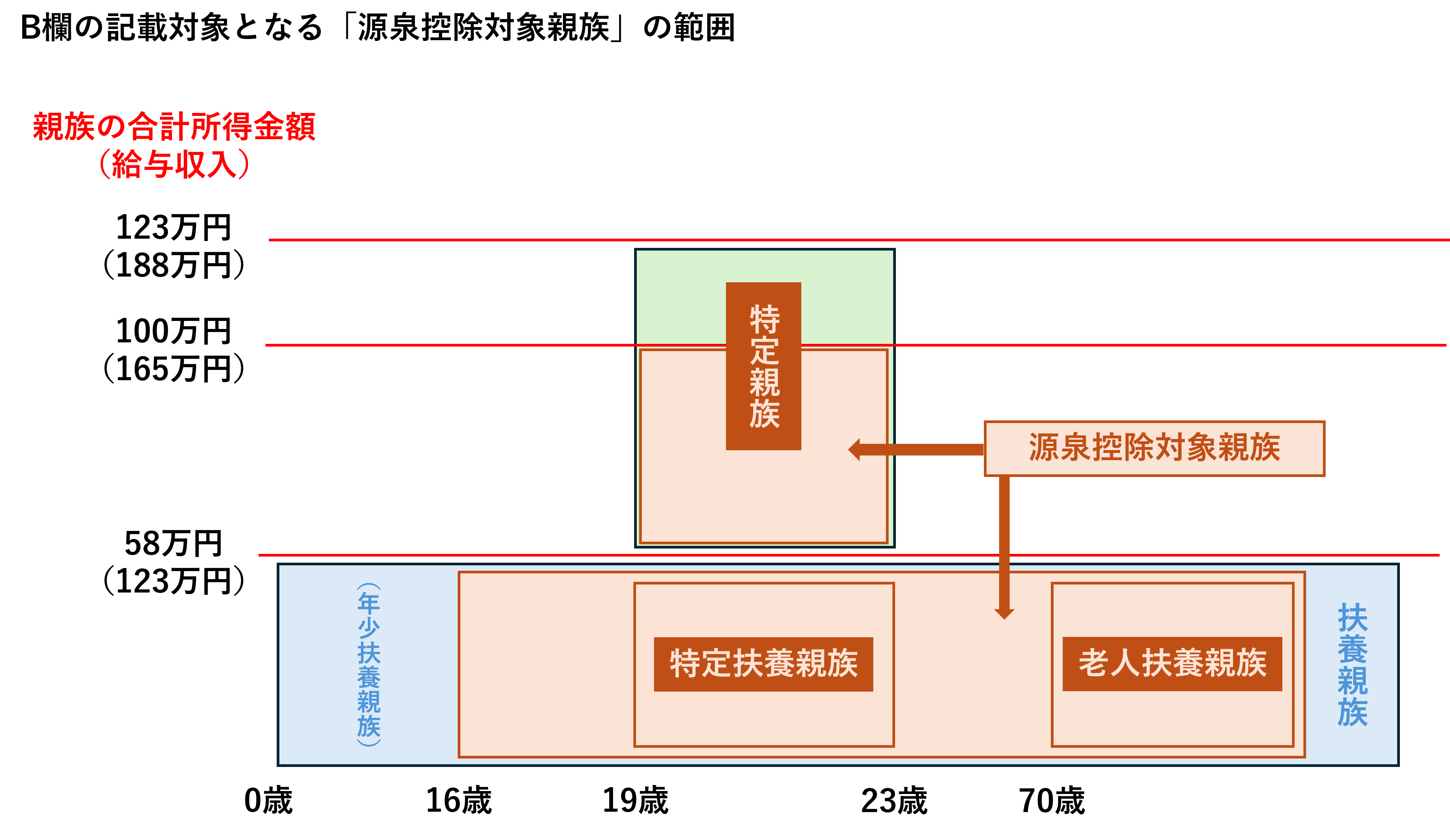 このように、B欄に記載できる親族の「所得上限」が、19歳から22歳の層に限って引き上げられた点が最も重要です。